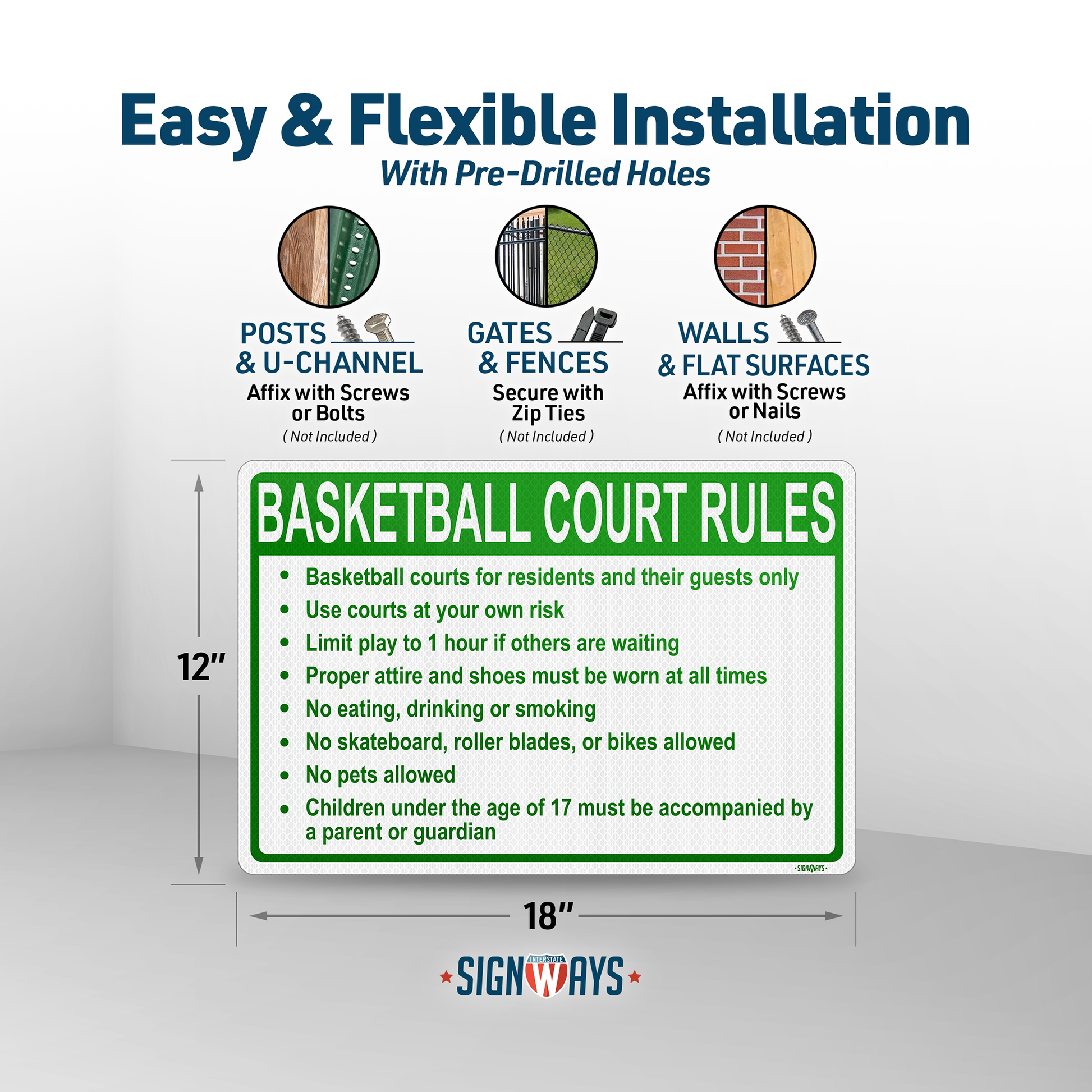 Basketball Court Rules Sign | Gym Rules Signs for Business Community Safety | Horizontal