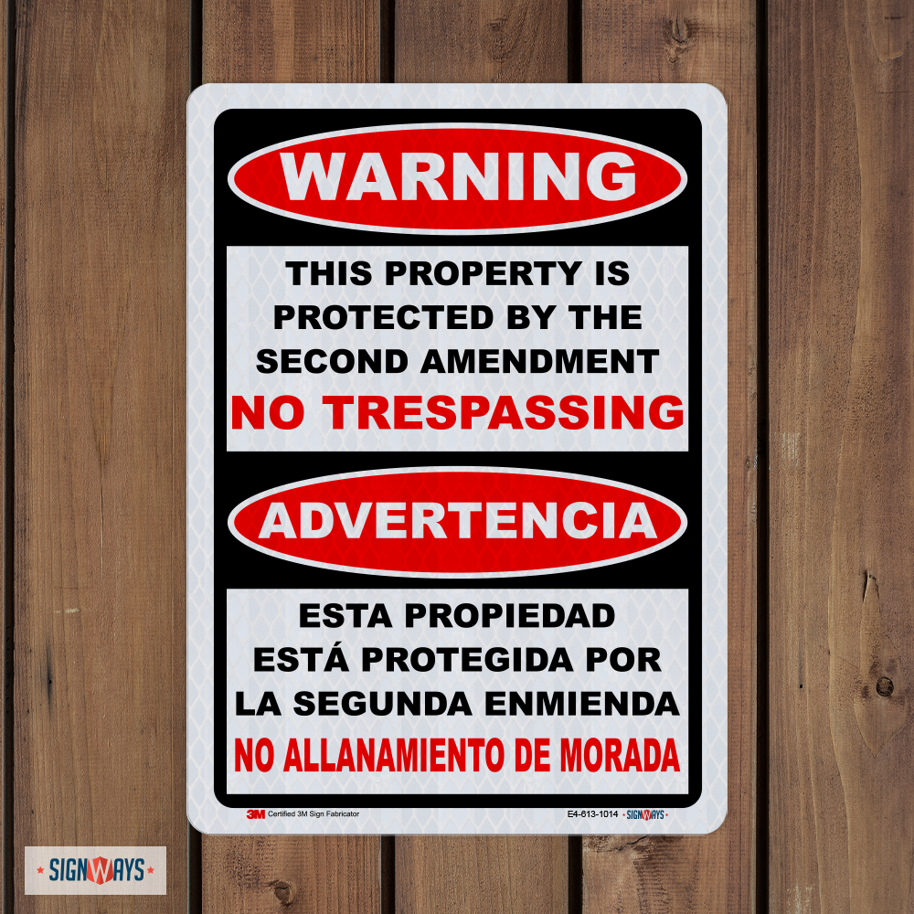 Bilingual - Warning This Property Is Protected By The Second Amendment Sign