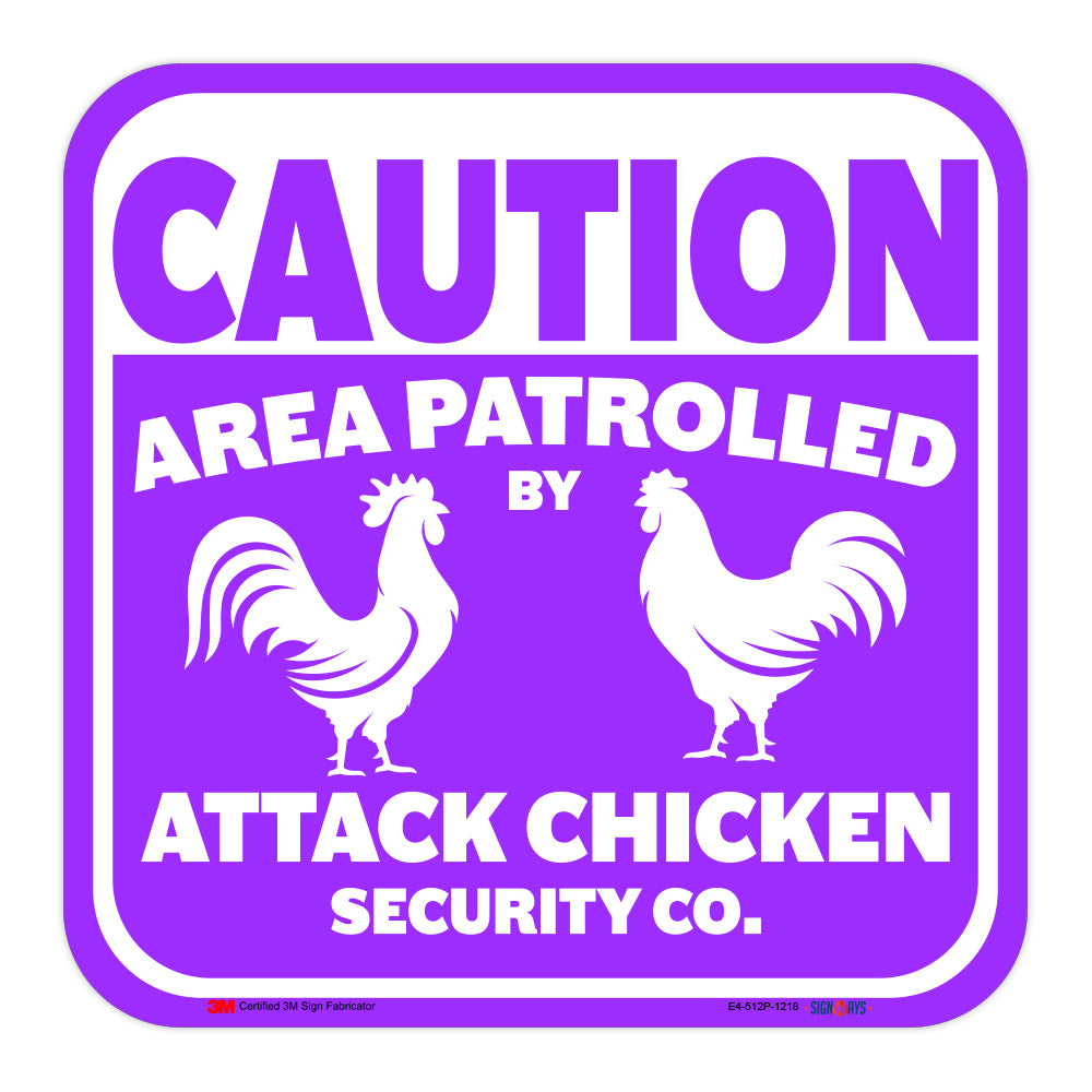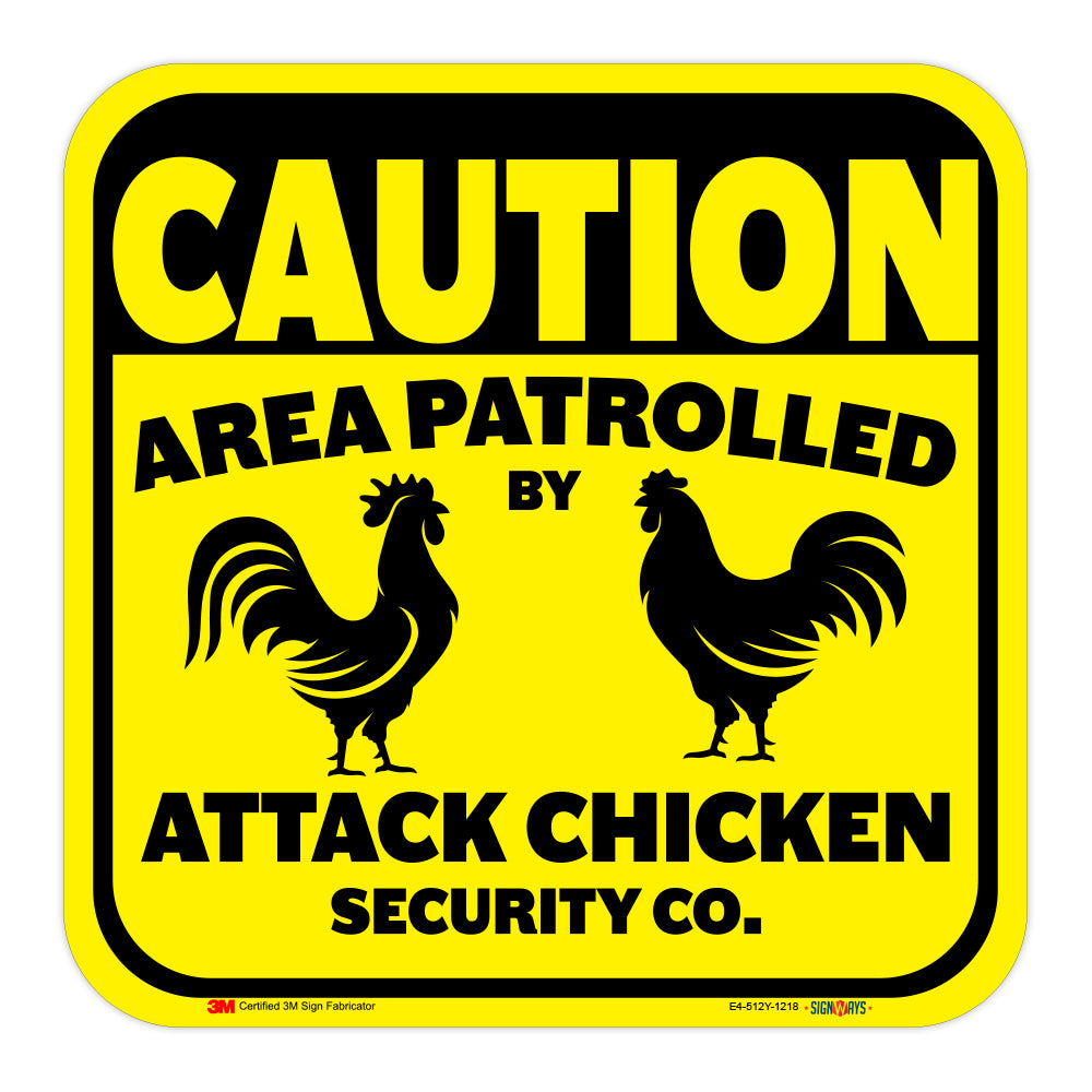 Caution, Area Patrolled By Attack Chicken Security Co. Sign