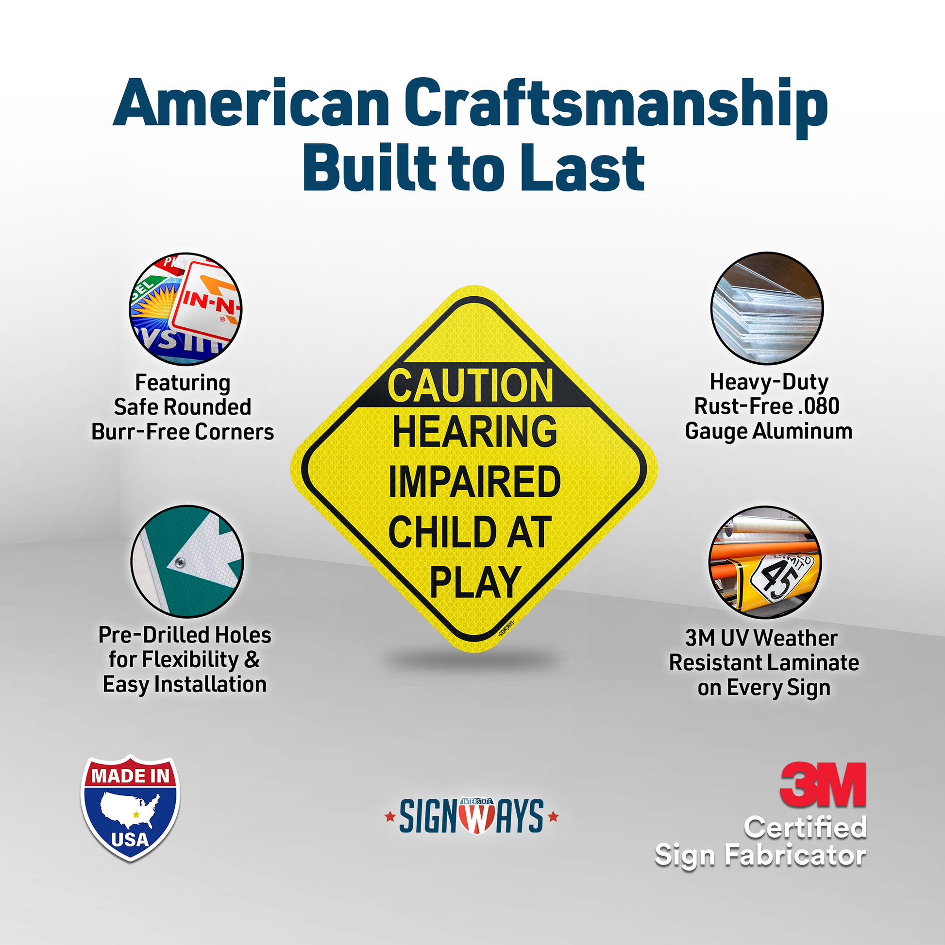 SignWays Slow Down Signs for Neighborhoods: Caution Hearing Impaired Child at Play Sign | Made in USA | 12” x 12”