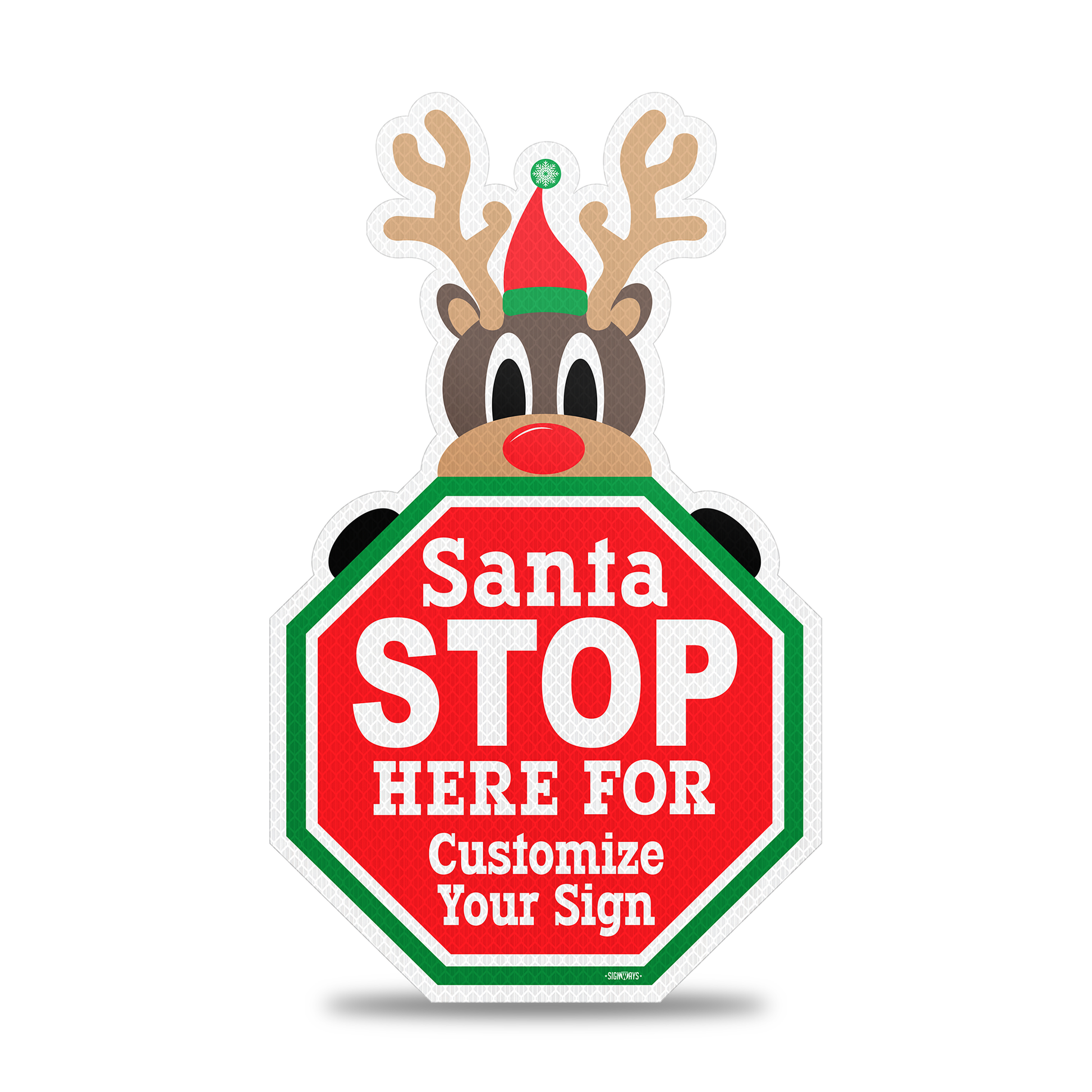Customizable Christmas Reindeer Santa Stop Here Sign