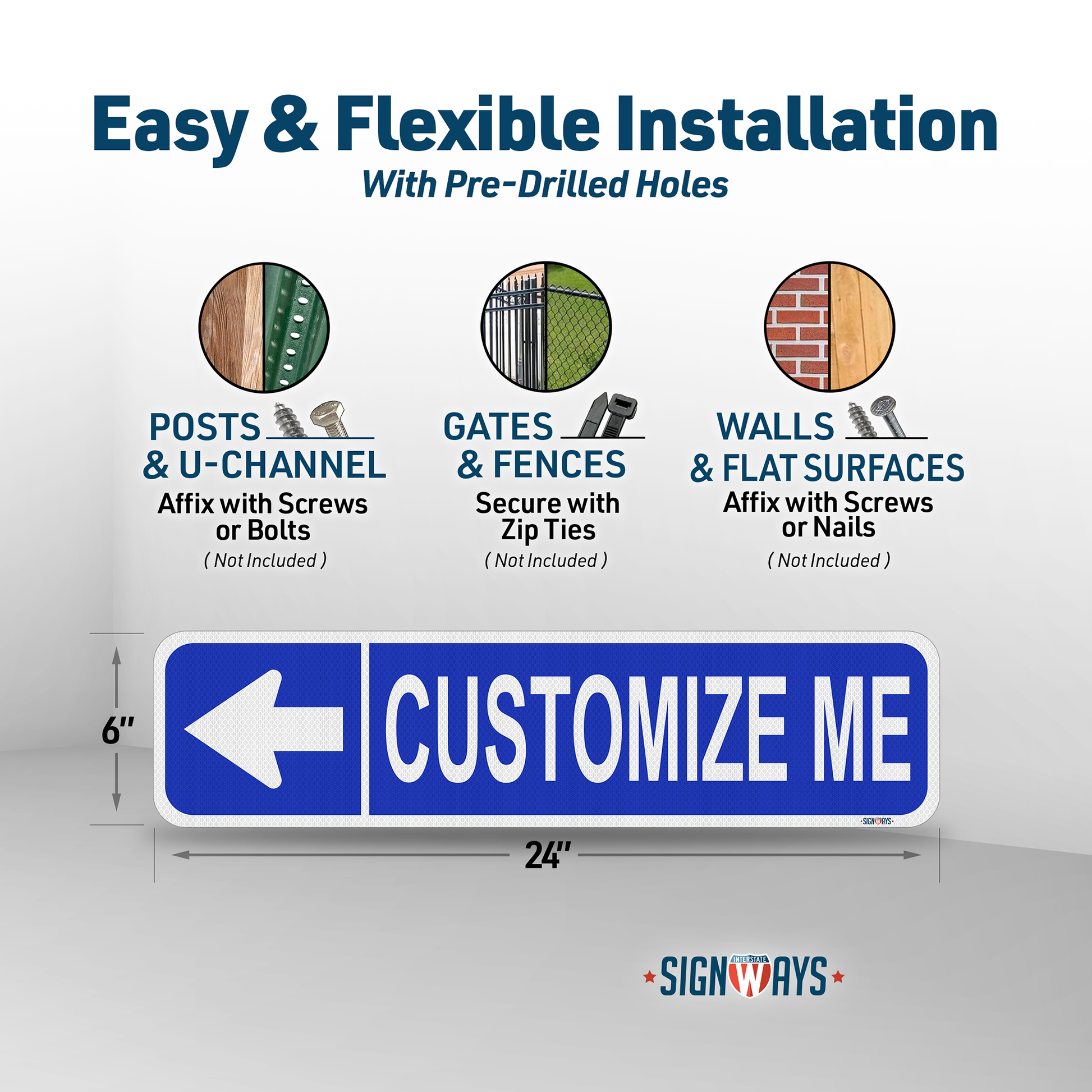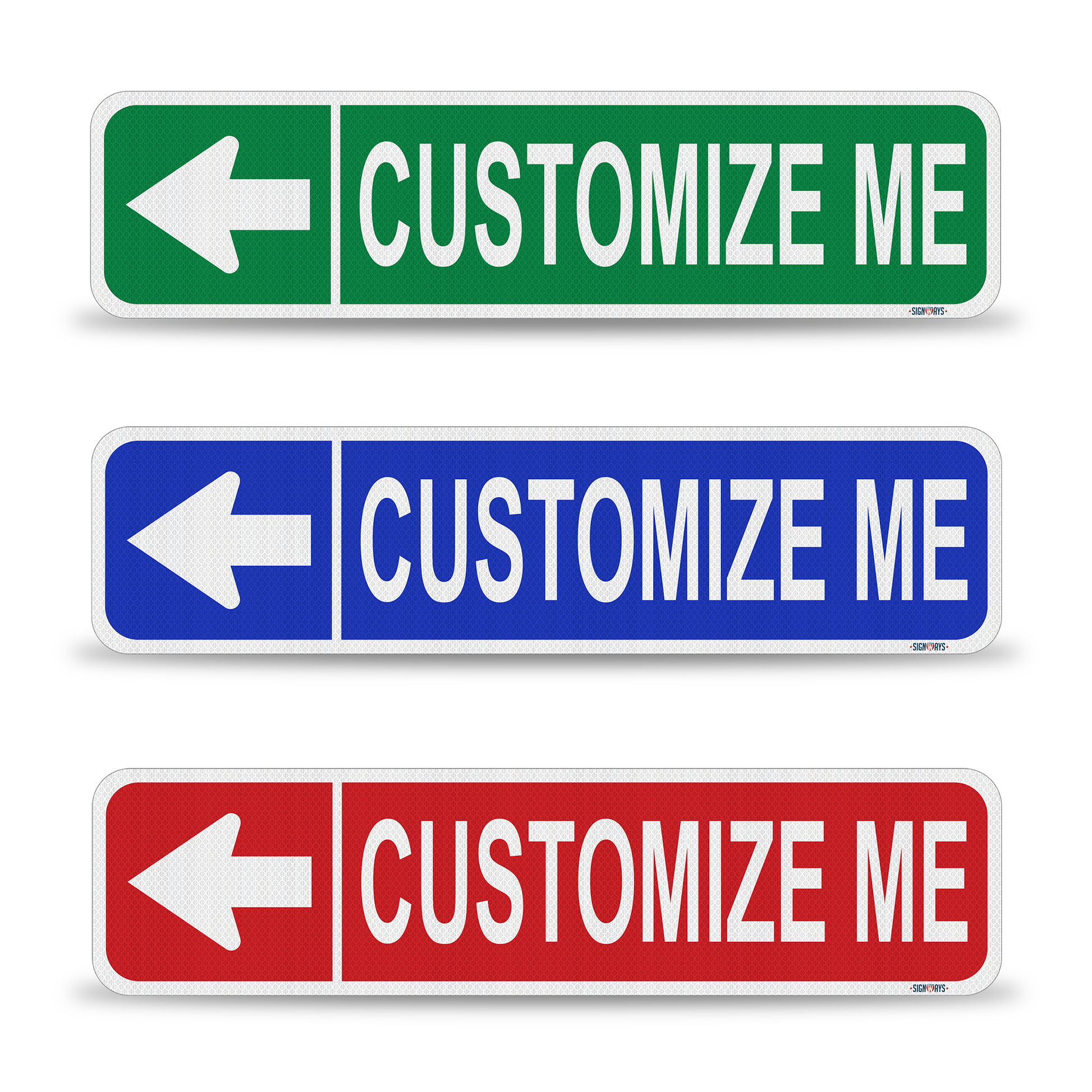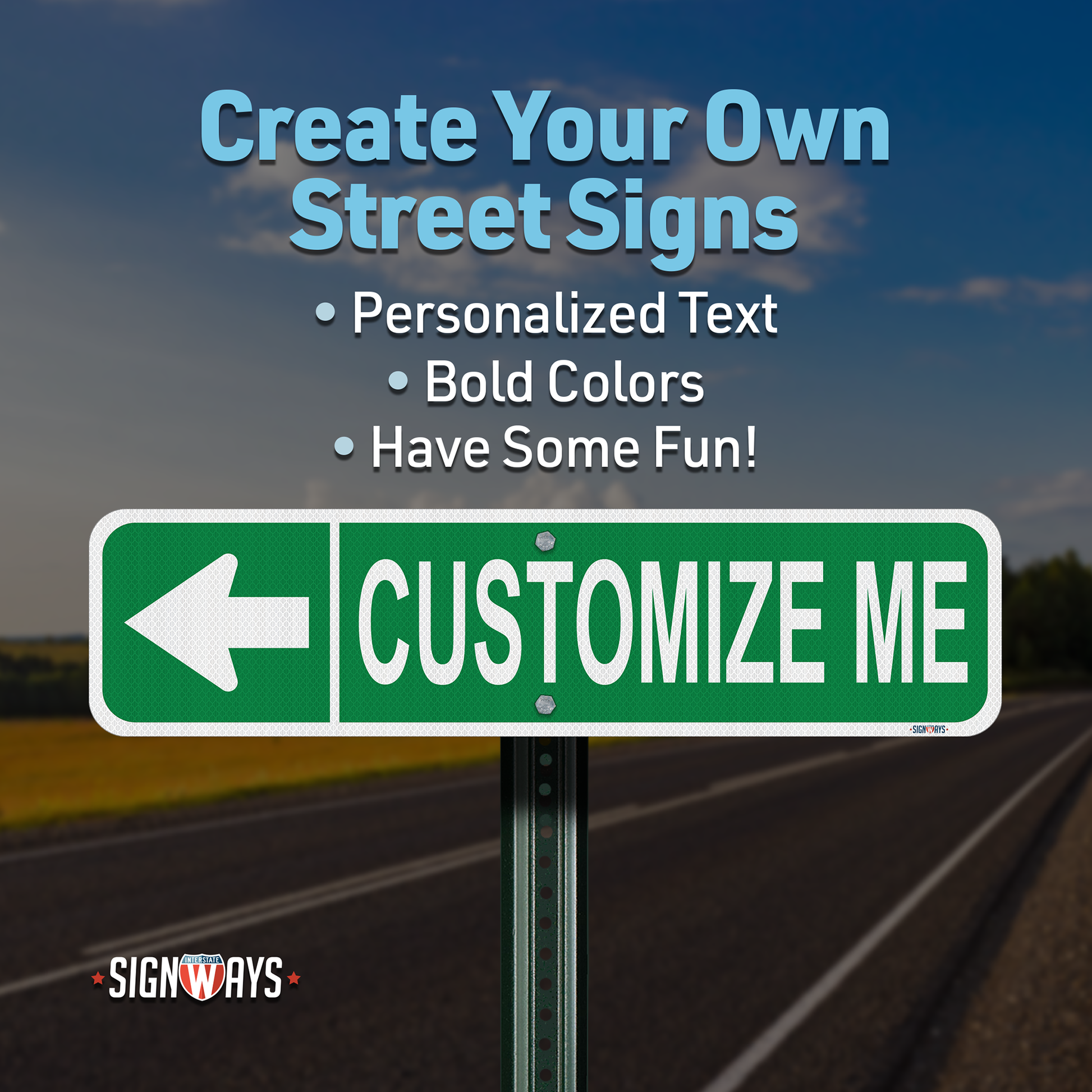 Street Signs Customized Left Arrow | Personalized Street Sign | Color, Symbol, Font, Words, Single or Double Sided 24x6"