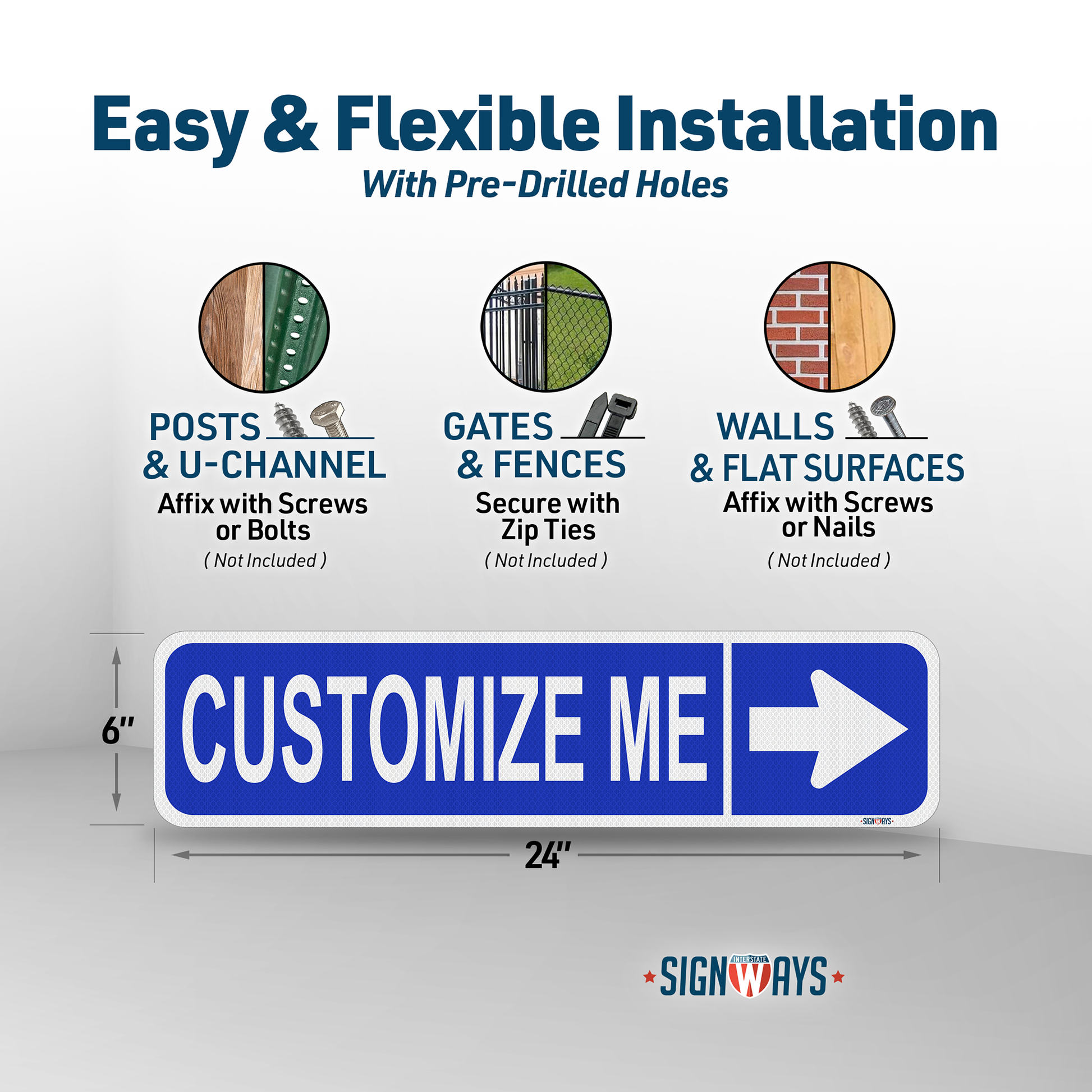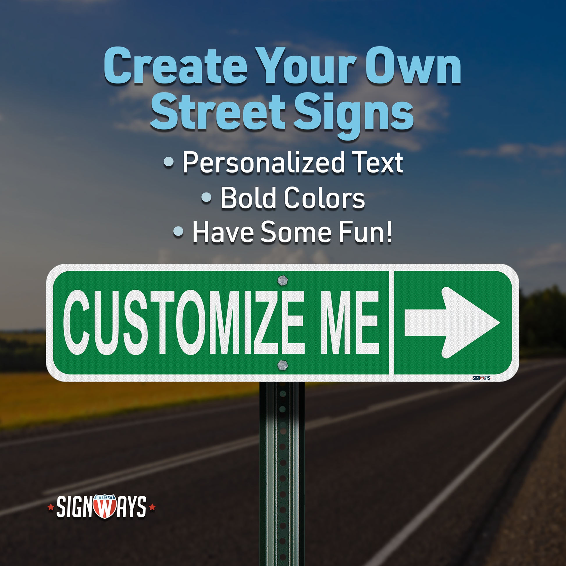 Street Signs Customized Right Arrow | Personalized Street Sign | Color, Symbol, Font, Words, Single-Sided 24x6”