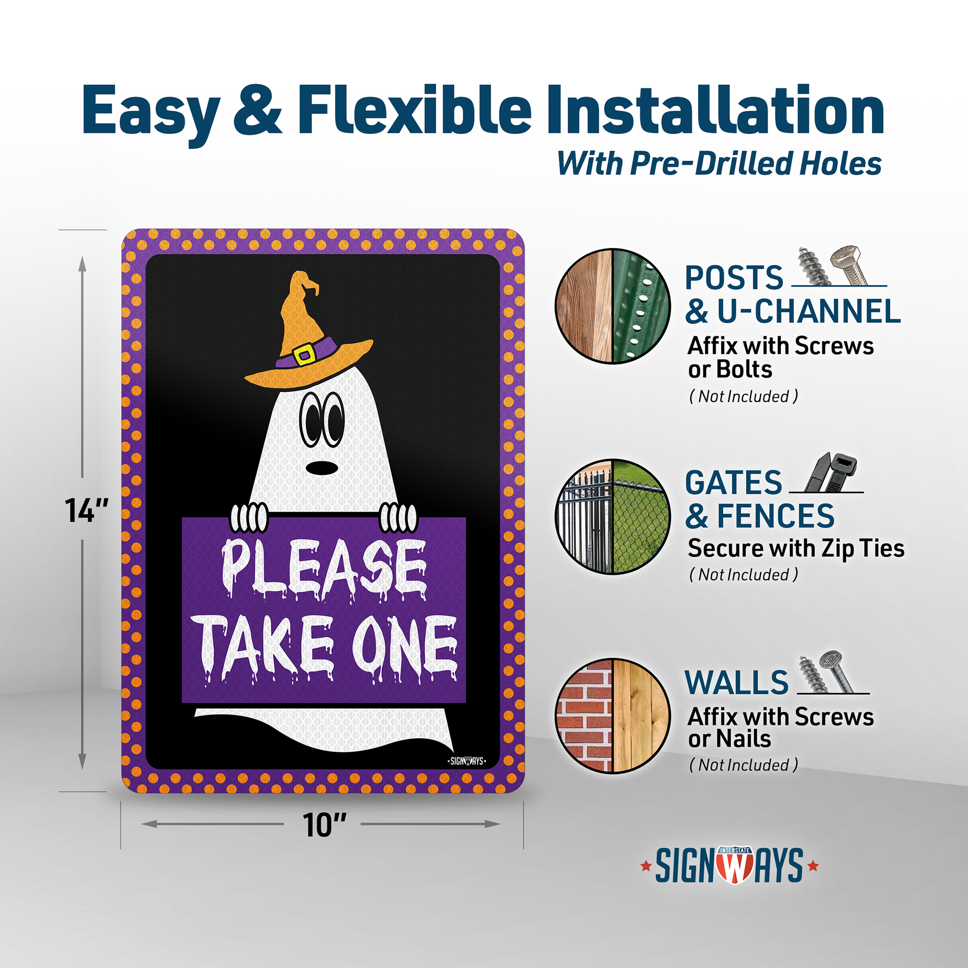 Please Take One Ghost Trick or Treat Sign | Halloween Candy Signs Outdoor 10x14”