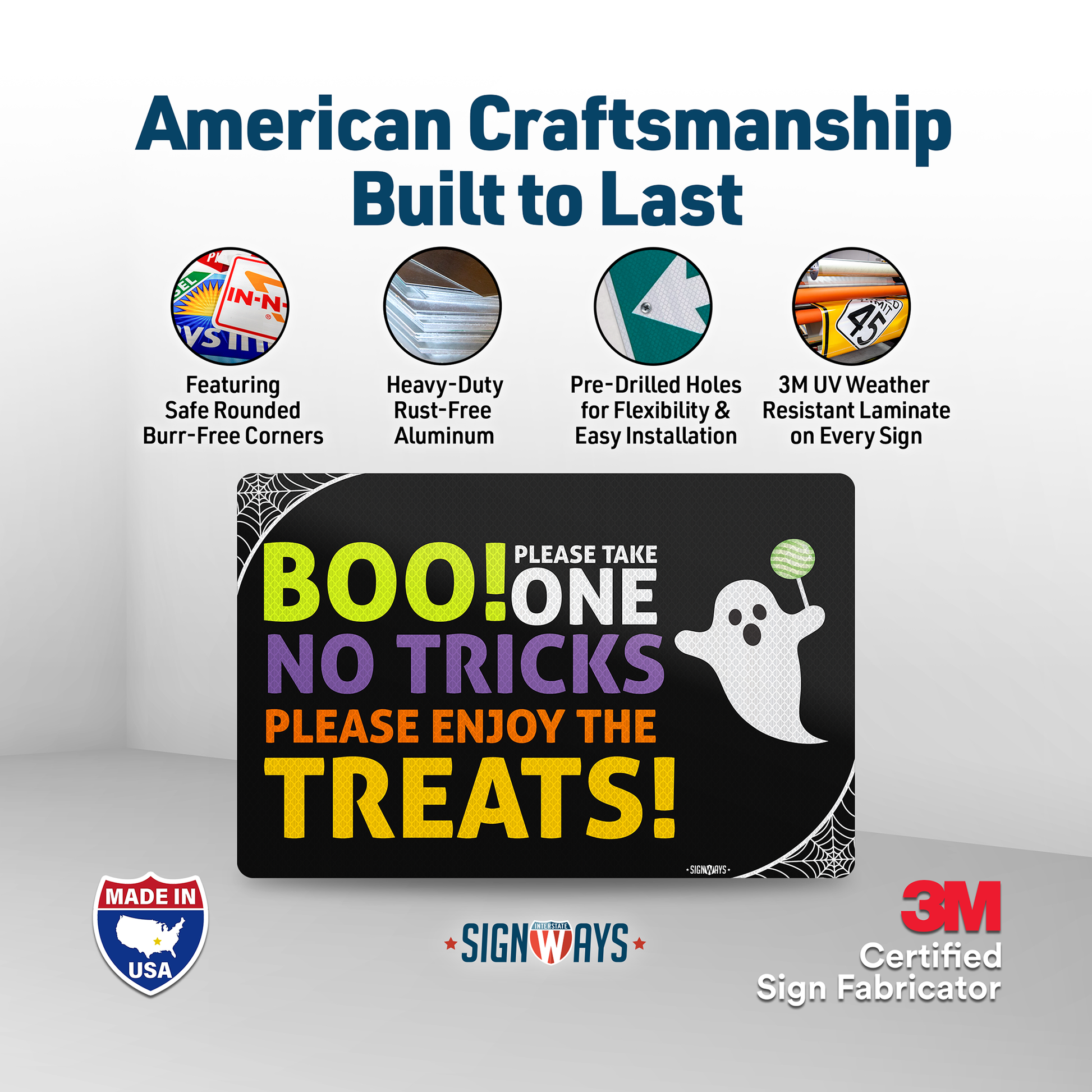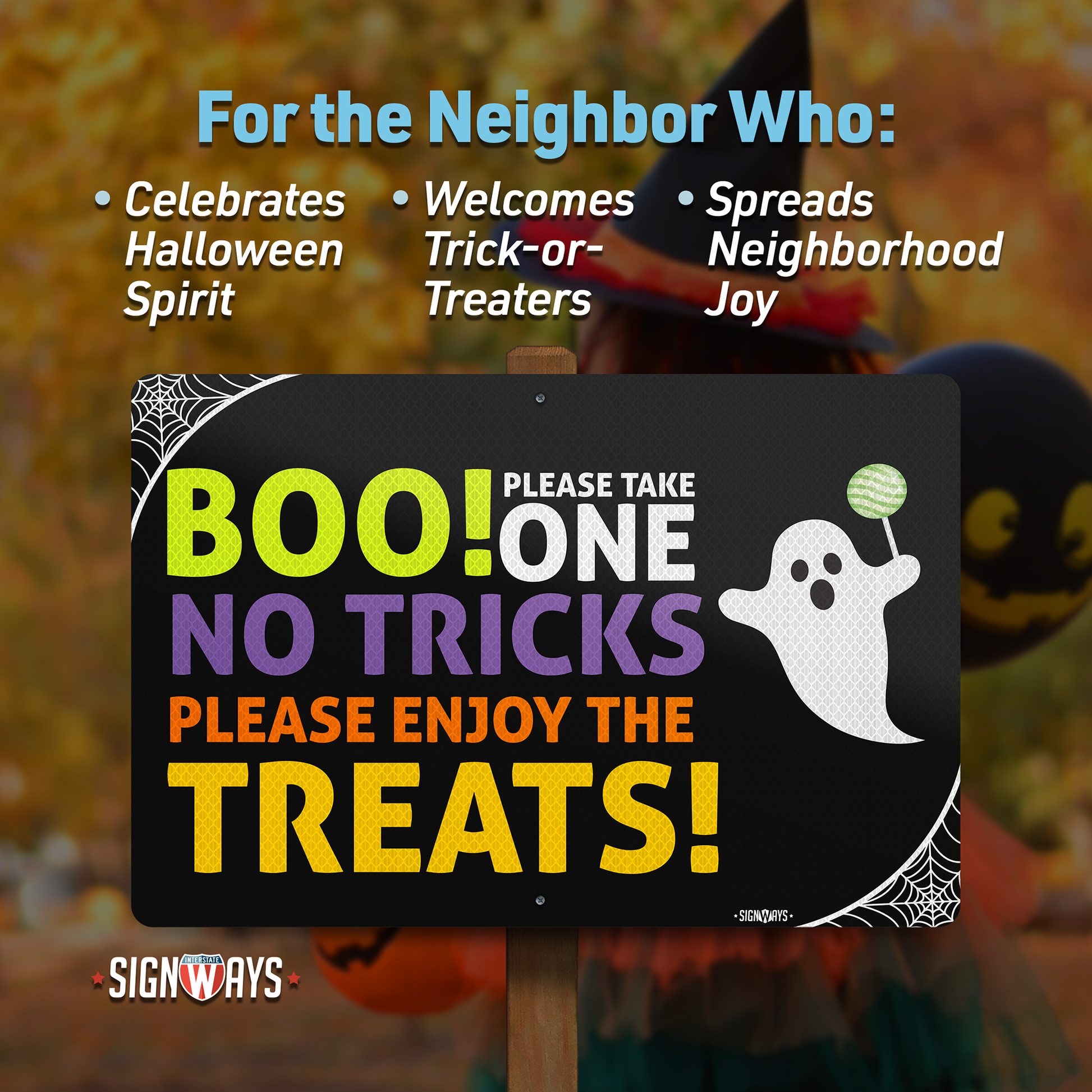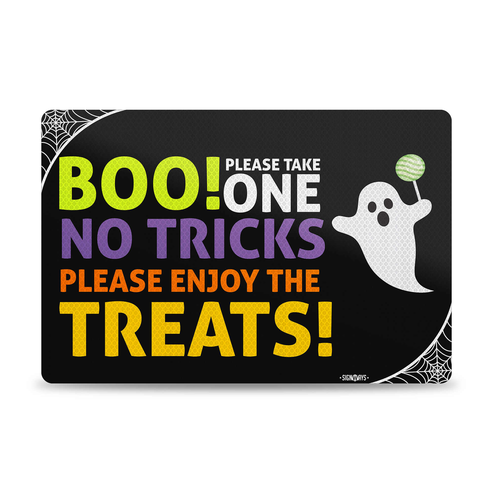 Trick or Treat Sign | Boo! Please Take One, No Tricks, Please Enjoy the Treats Halloween Candy Sign | 18x12”