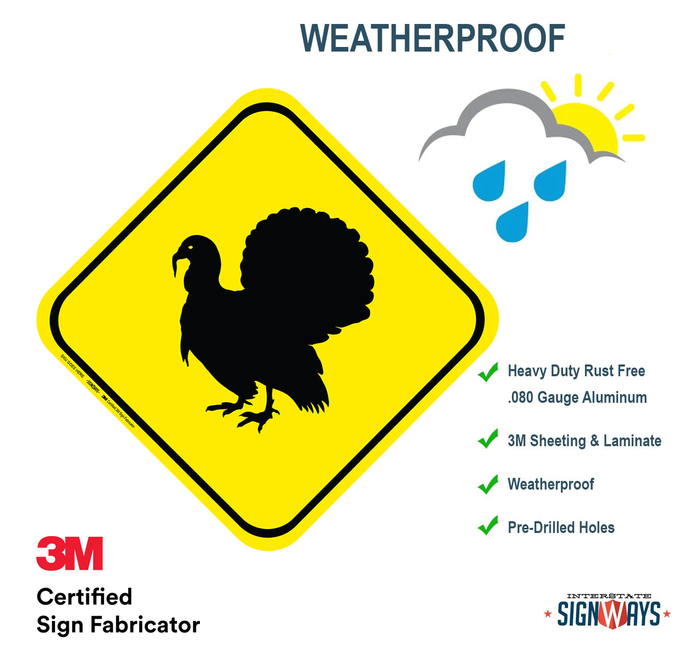 Interstate Signways Turkey Crossing - High Quality Aluminum Sign, Made in the USA