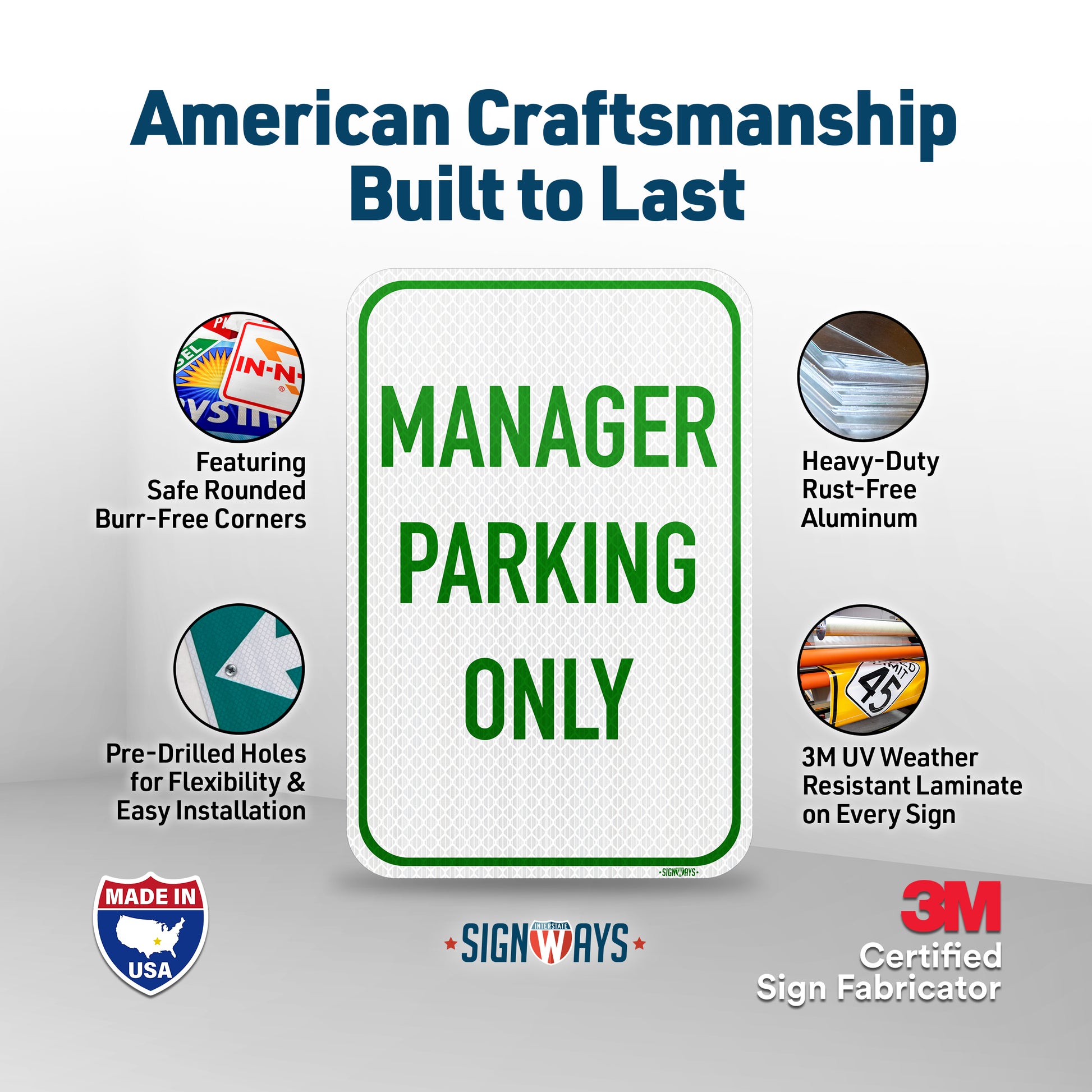 SignWays Manager Parking Only (White Green) | Reserved Parking Signs | Business Signs for Outside | Made in USA 12” x 18”