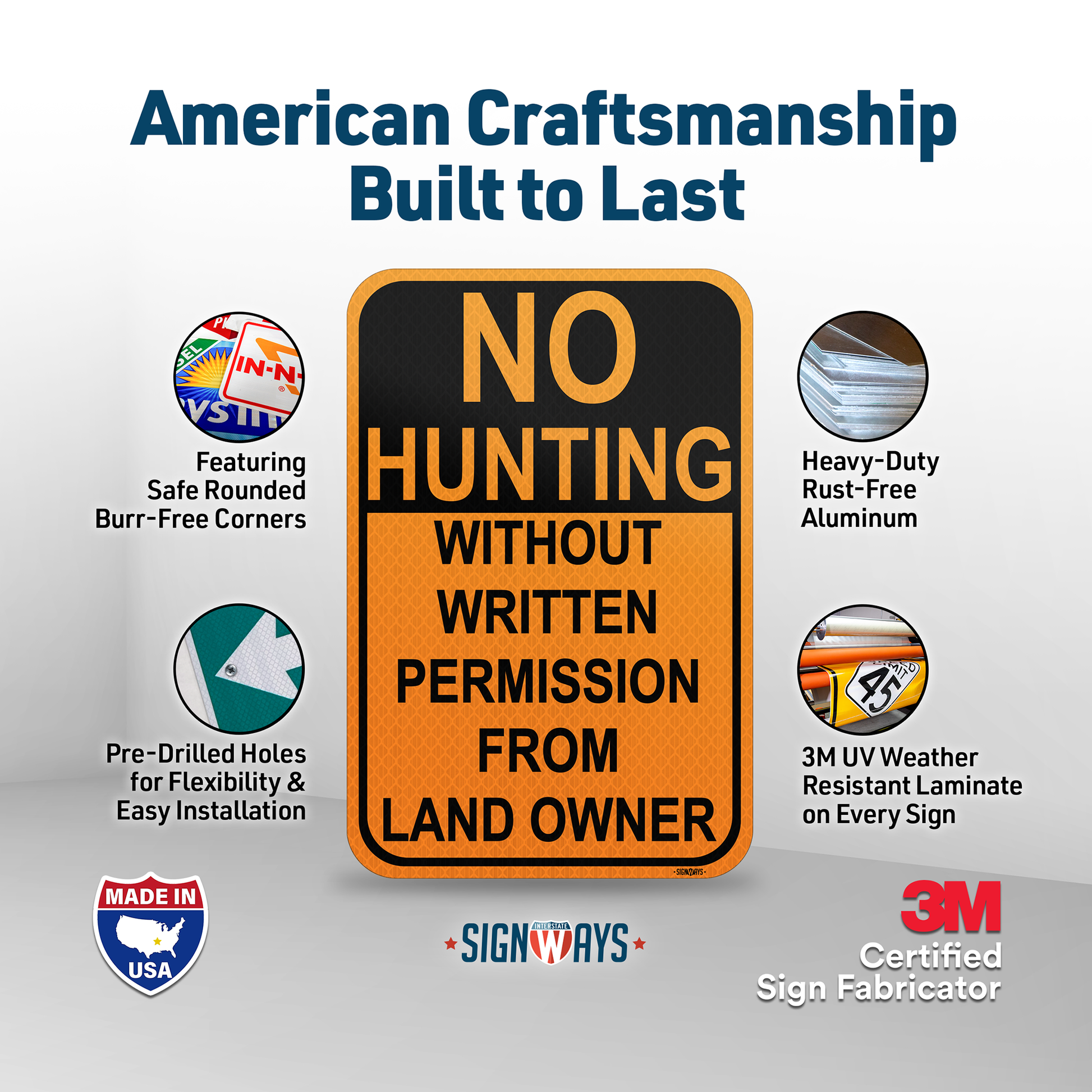 SignWays No Hunting Signs Private Property | (Orange and Black) 12x18”