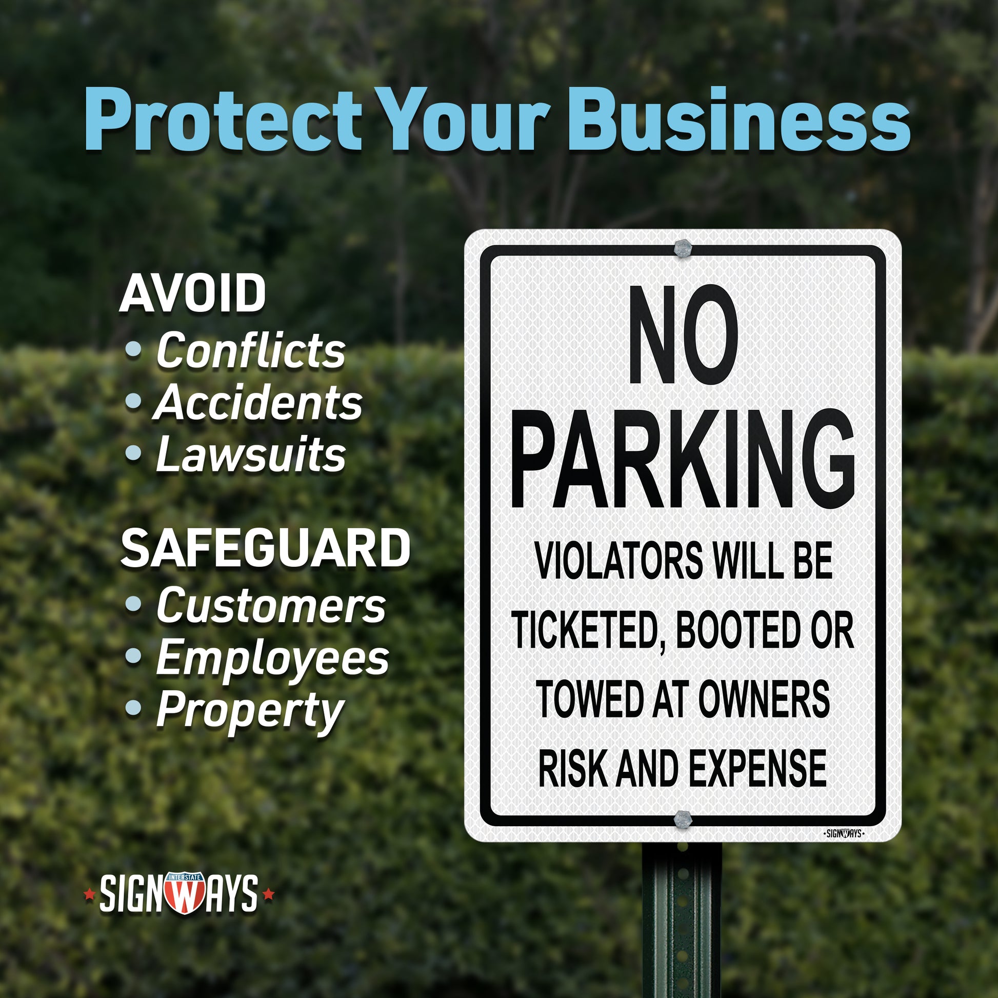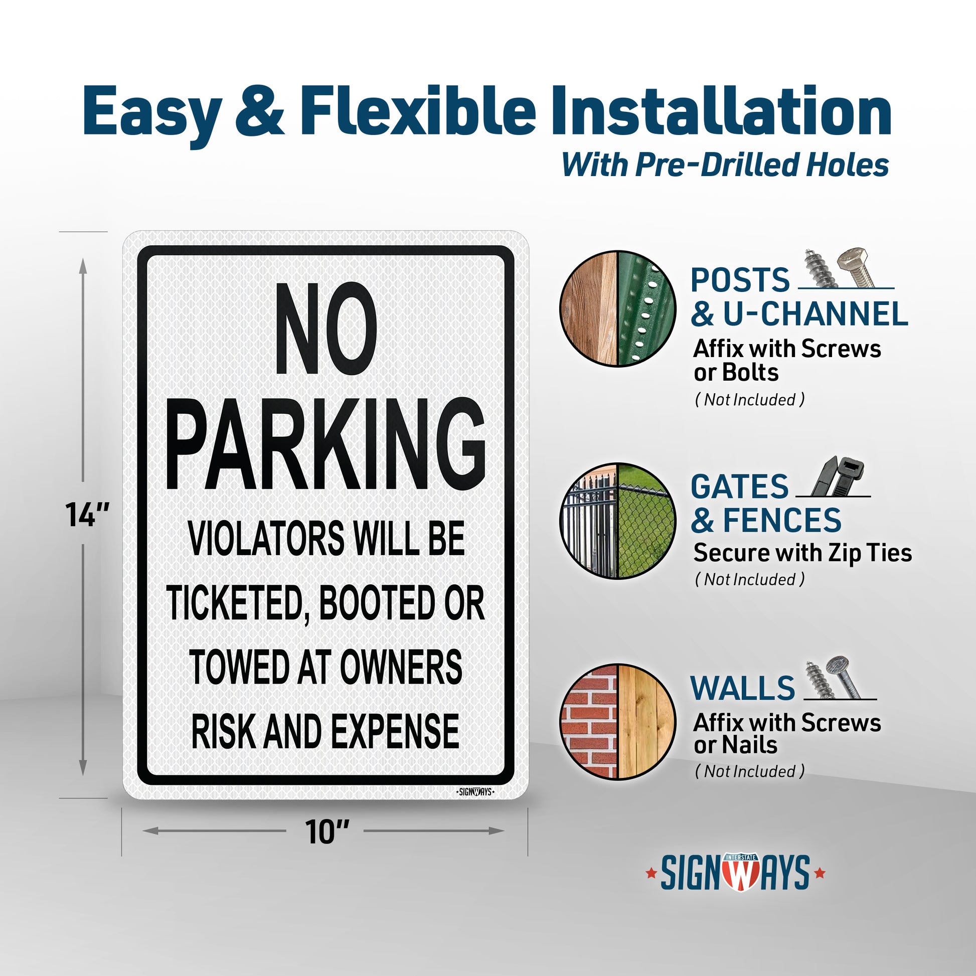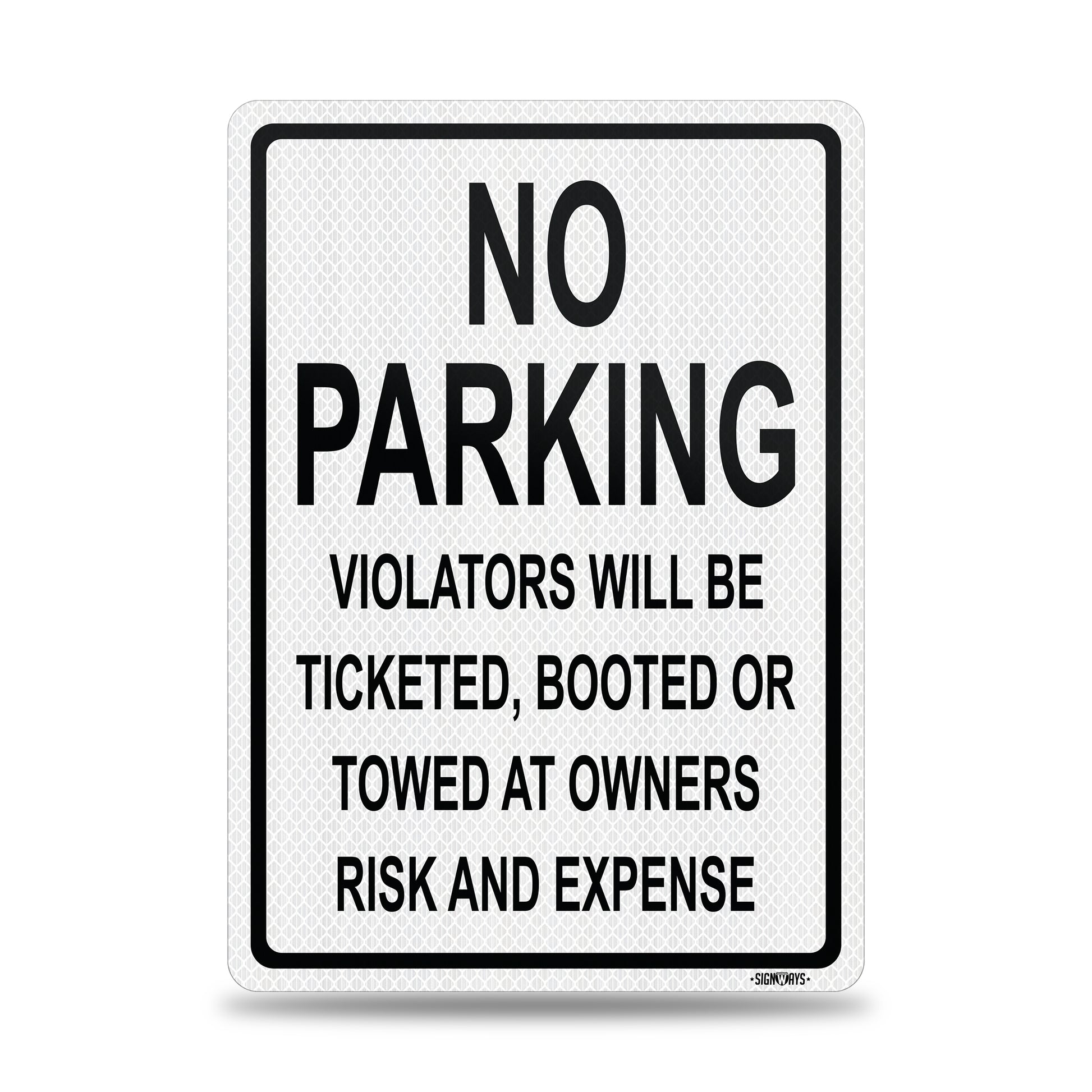 SignWays No Parking Signs | Violators Ticketed, Booted, or Towed Sign | Black White Vertical | Made in USA
