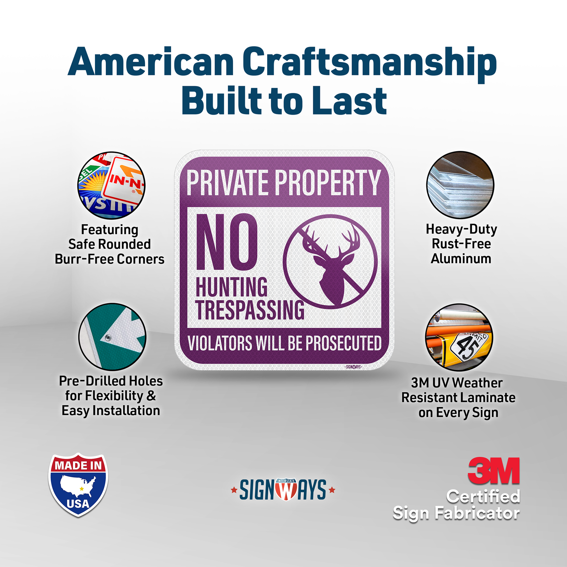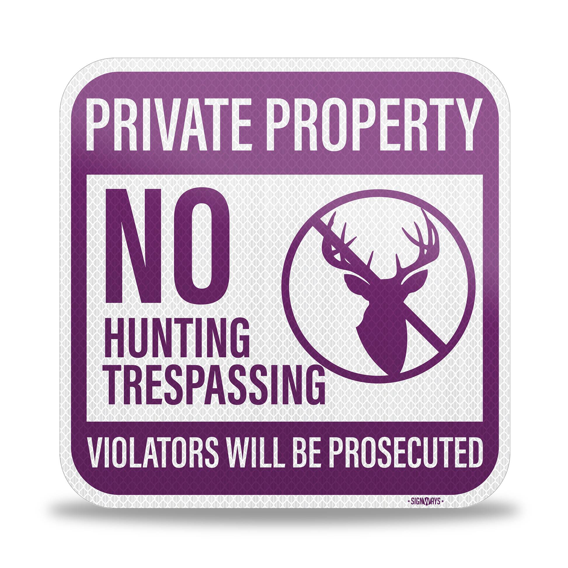 Private Property Signs, No Hunting Trespassing Signs | 3M Aluminum Purple 12x12”