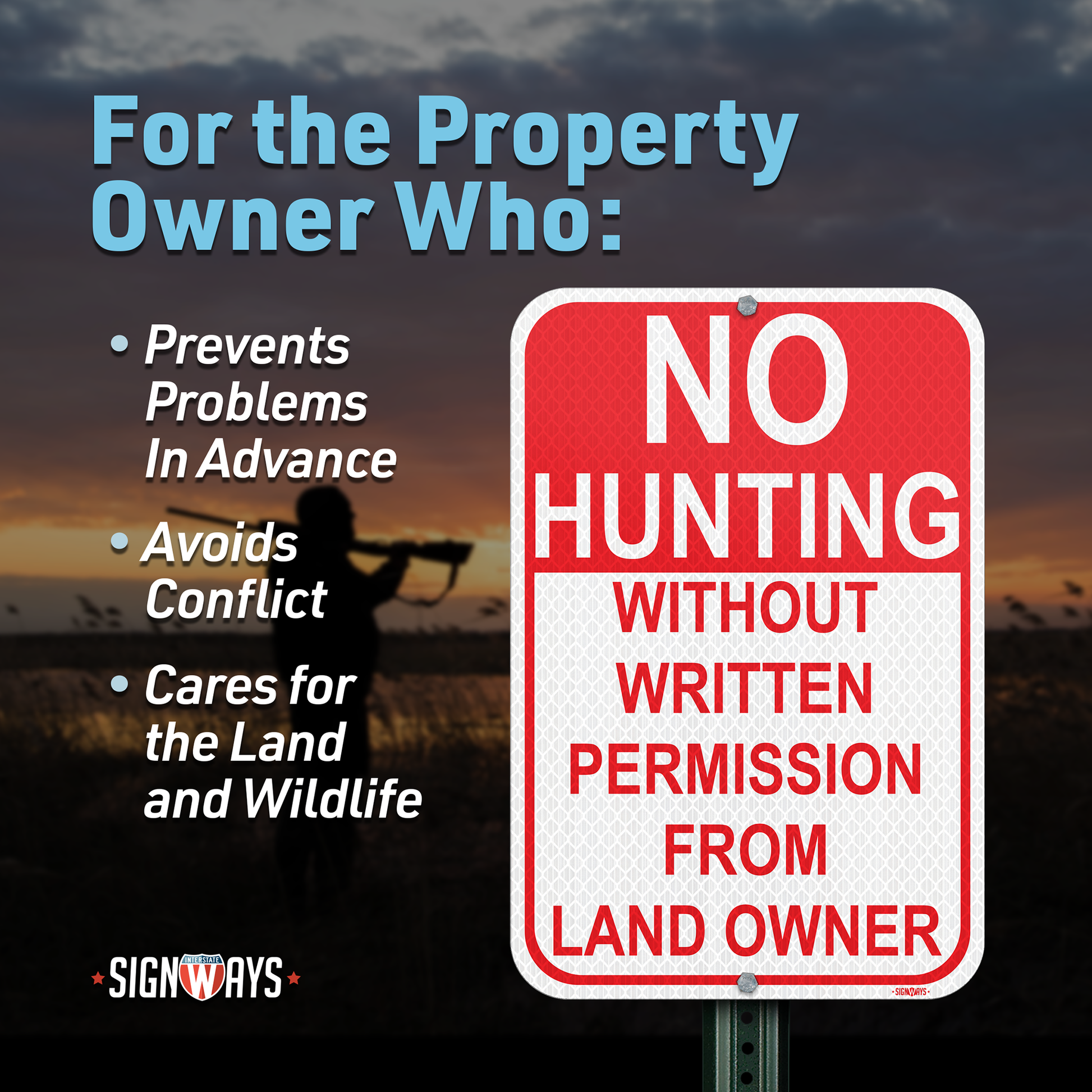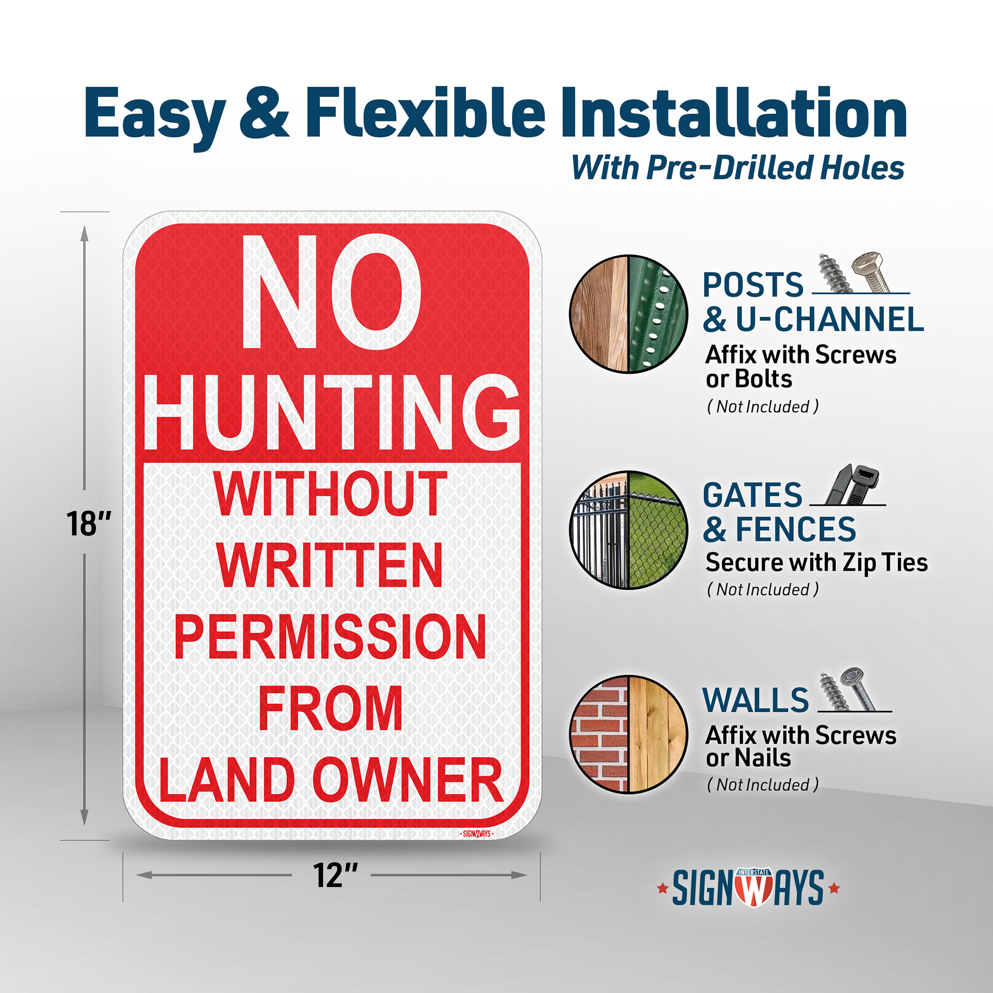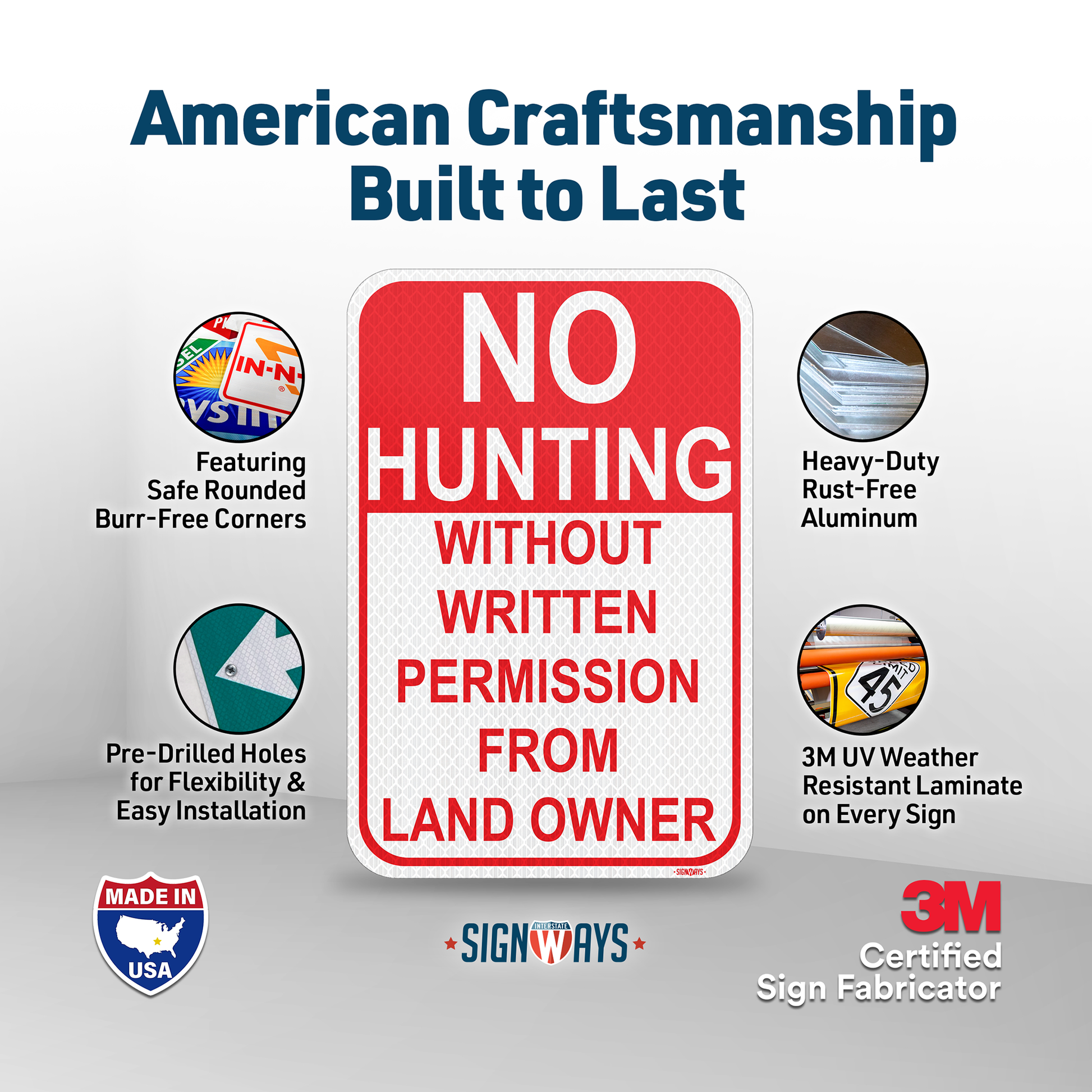 SignWays No Hunting Signs Private Property | (Red and White) 12x18”