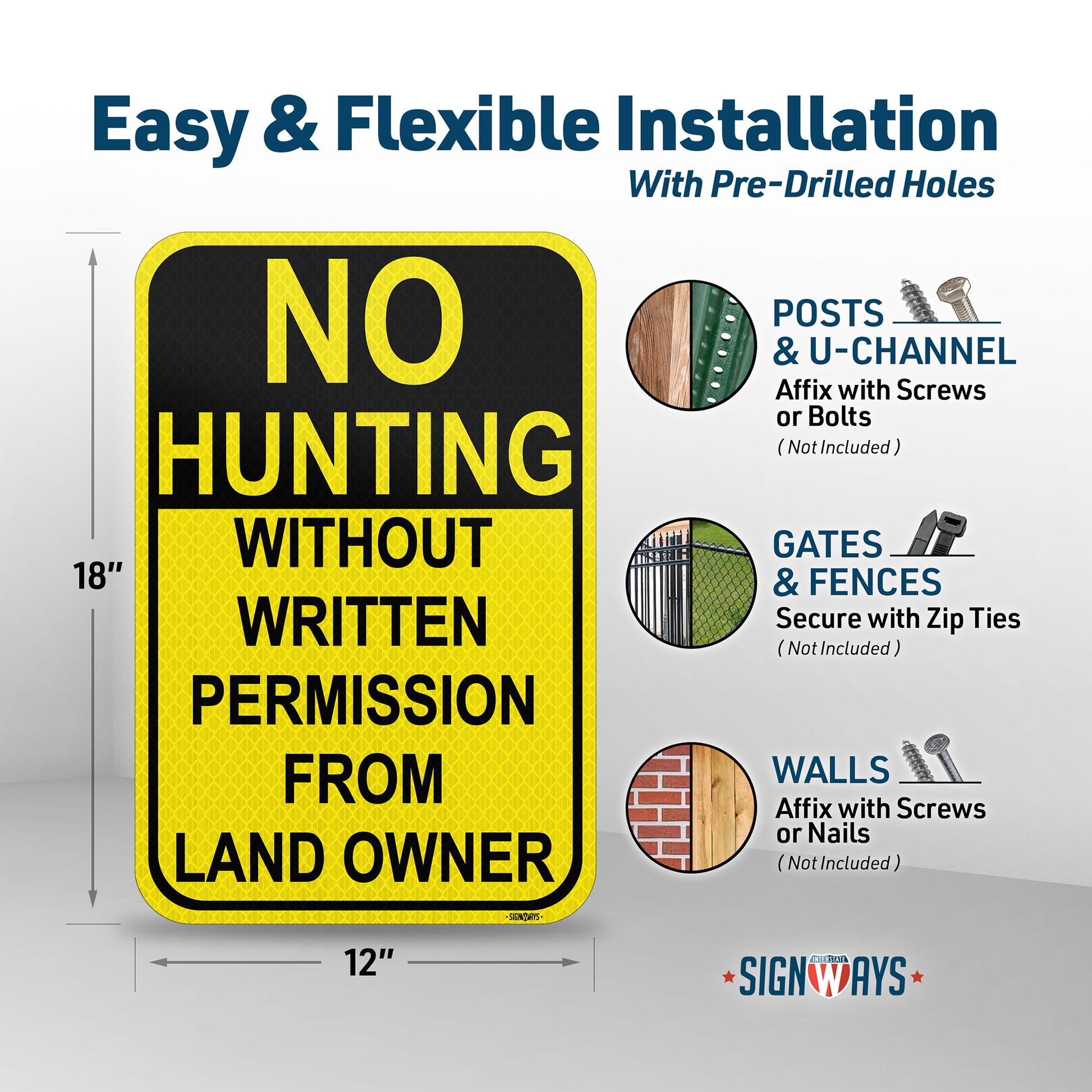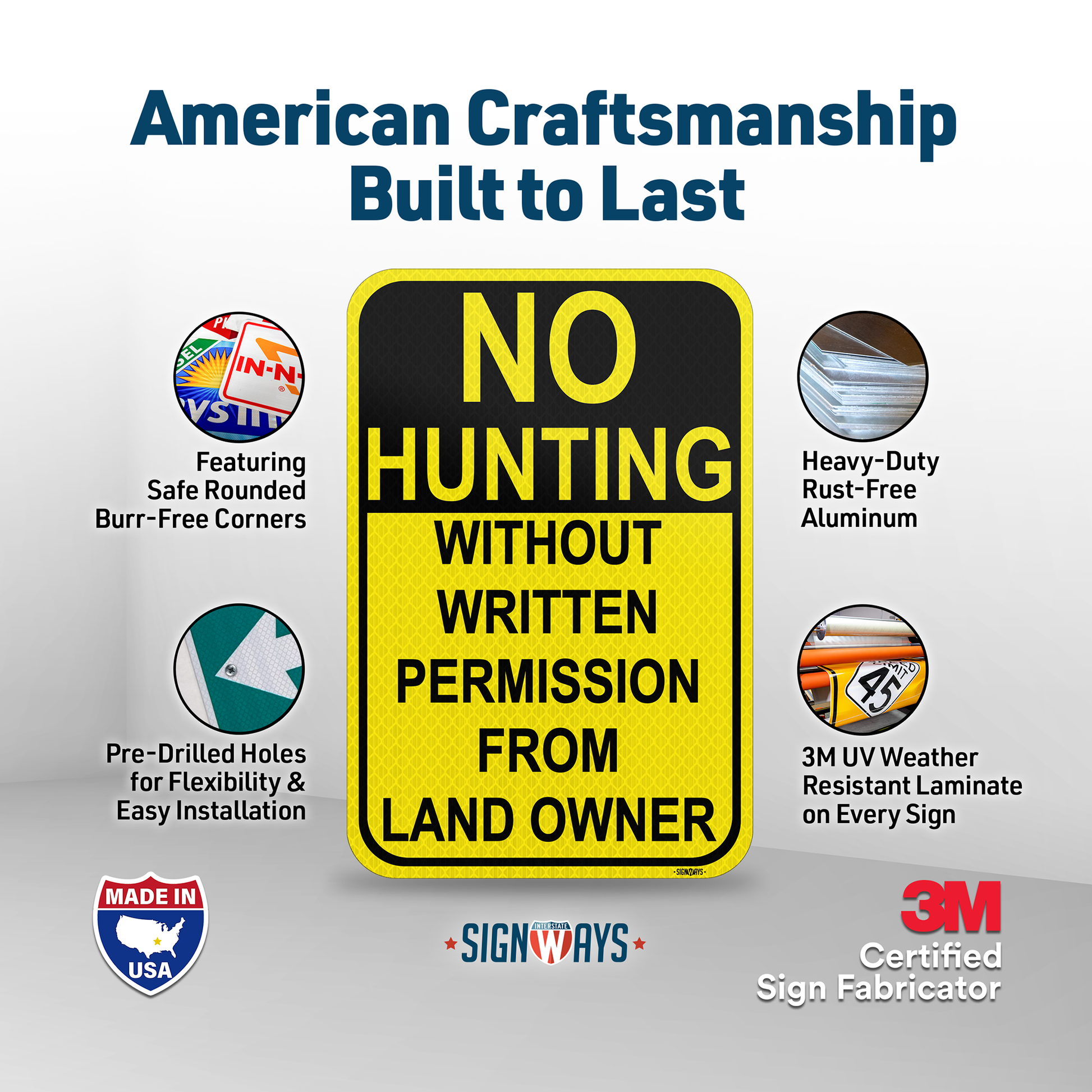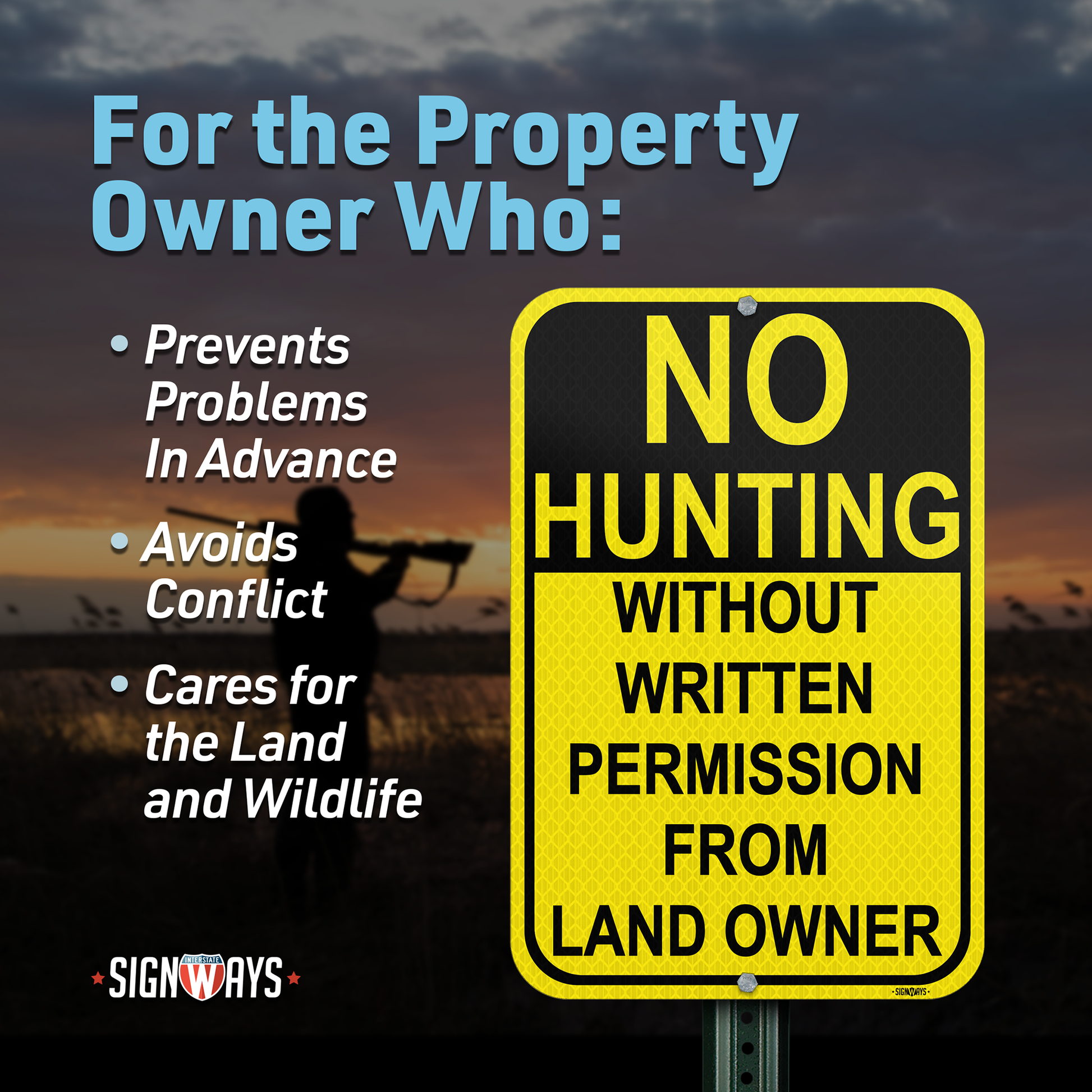 SignWays No Hunting Signs Private Property | (Yellow and Black) 12x18”