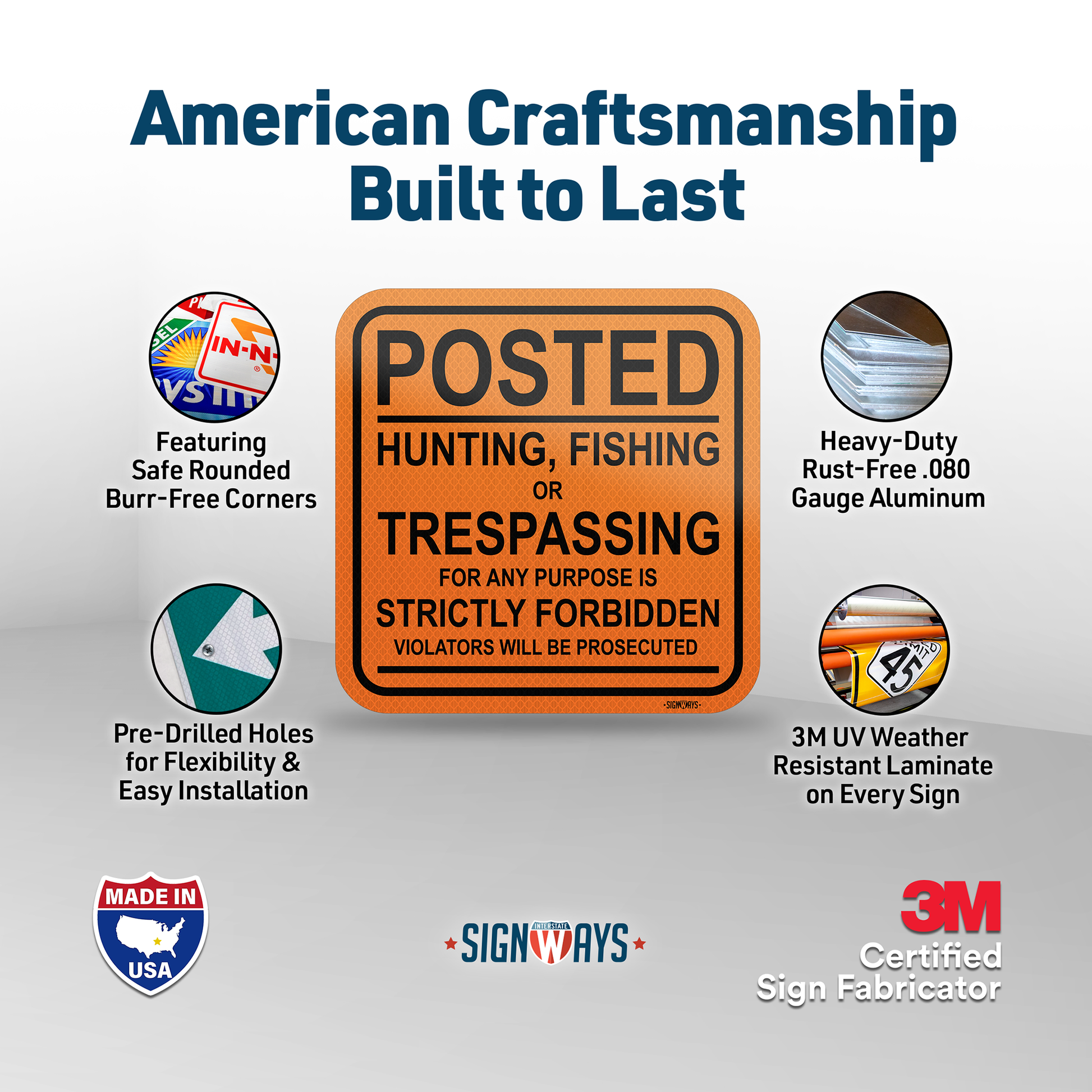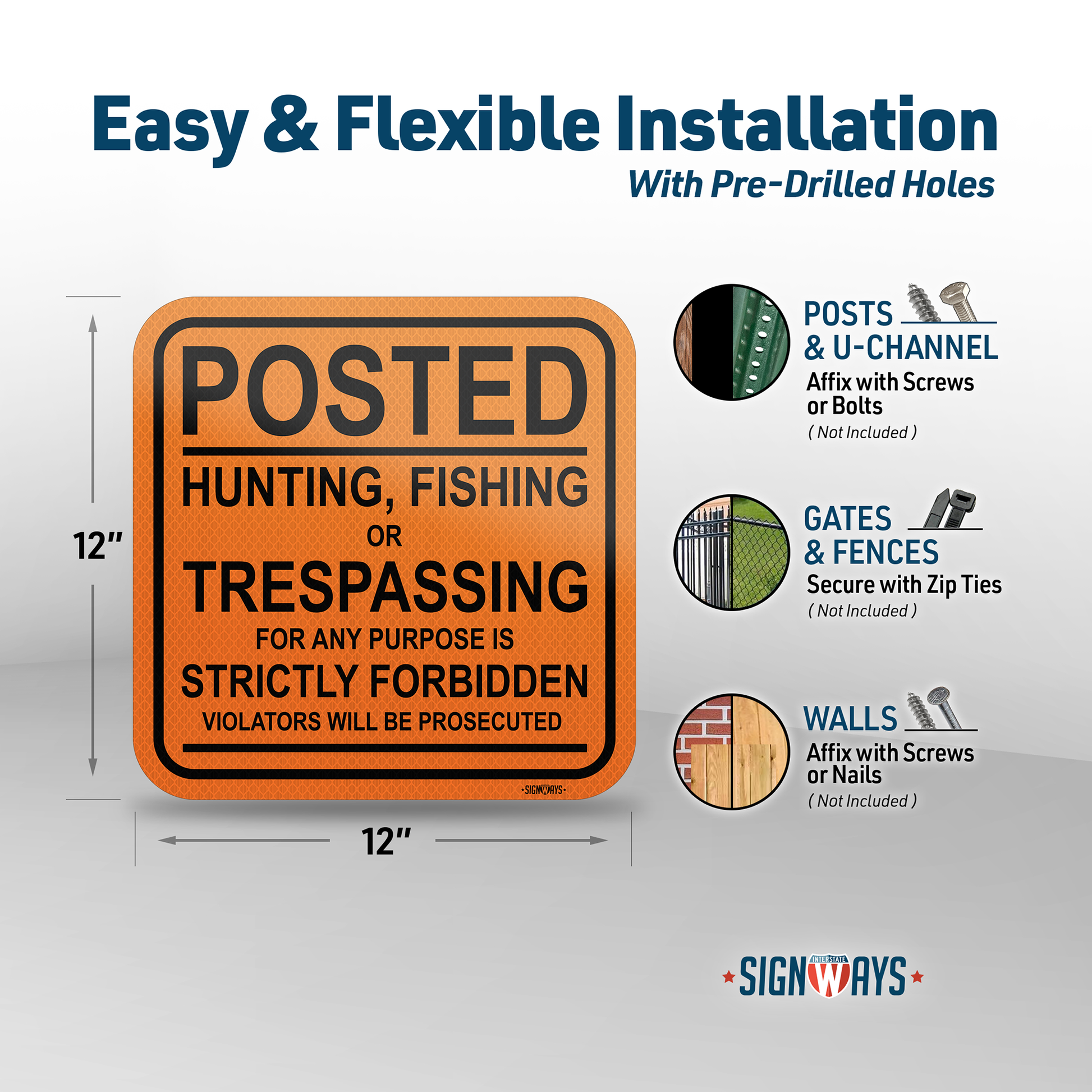 No Hunting or Trespassing Signs, No Fishing Signs | Orange / Black 12x12”