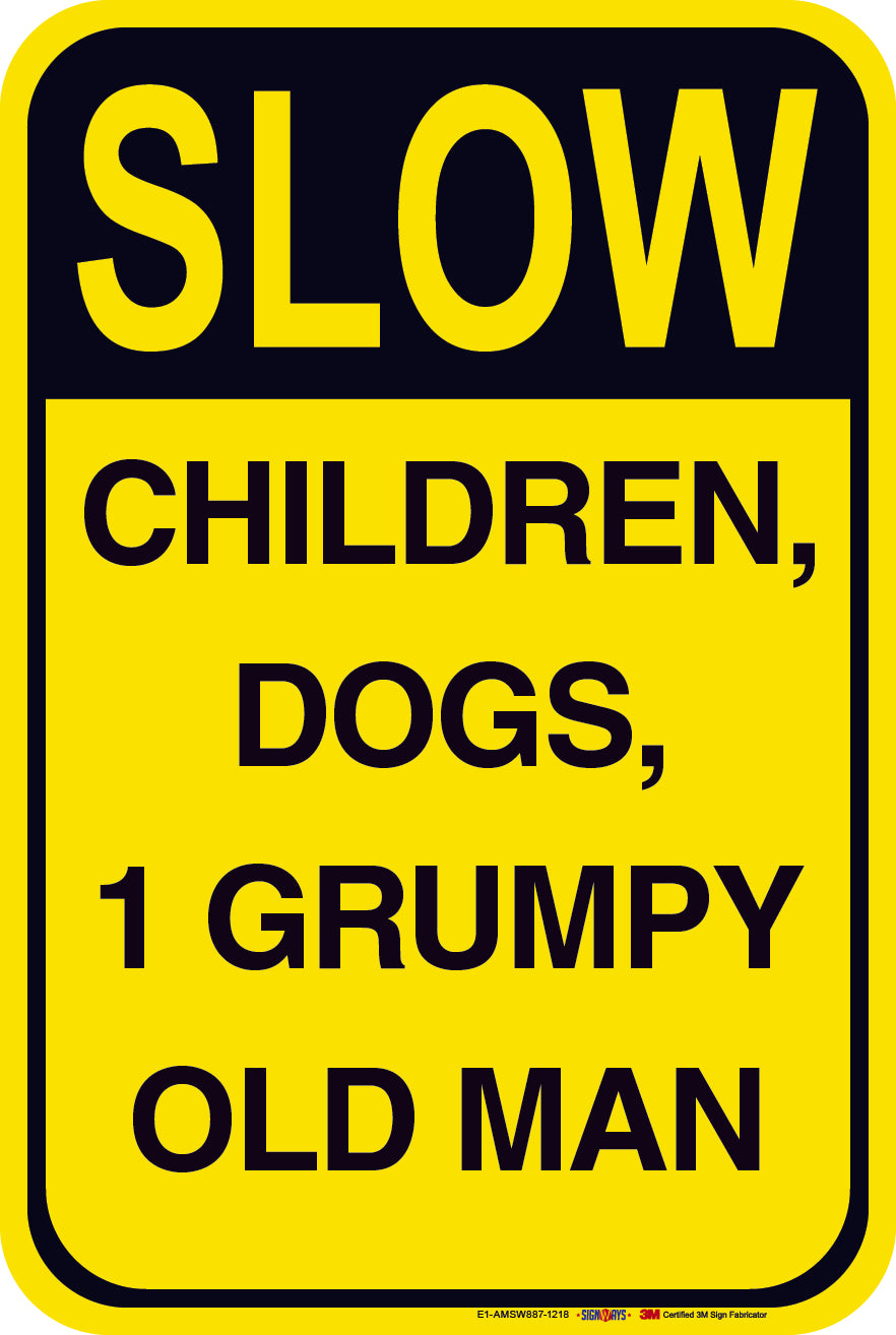 Slow Children Dogs Grumpy Old Man/Woman Sign
