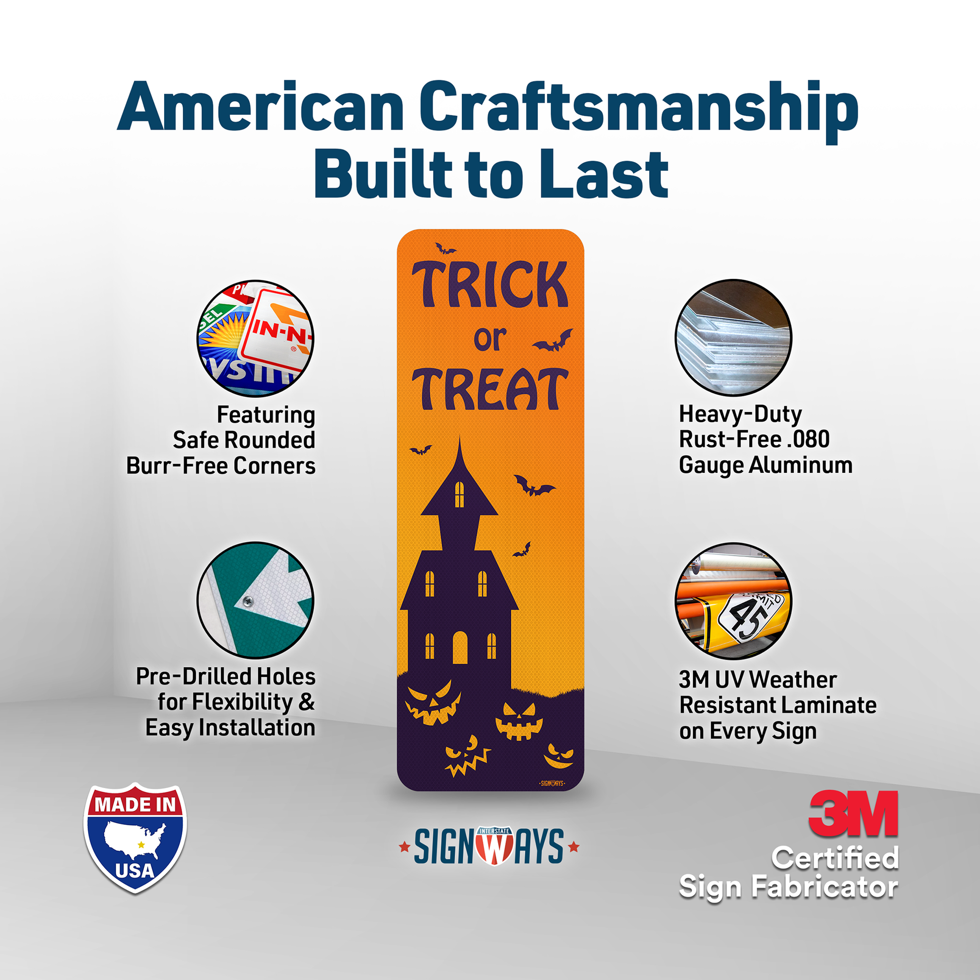 Trick or Treat Sign, Halloween Door Sign: Large Entry Way Sign for Front Door Porch Area 12x36”